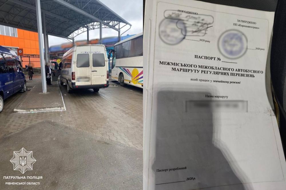 Під час перевірки документів у 57-річного водія автобуса Volkswagen патрульні виявили, що паспорт міжміського міжобласного автобусного маршруту регулярних перевезень містить ознаки підробки — печатки та підписи нанесені за допомогою комп’ютерної техніки.