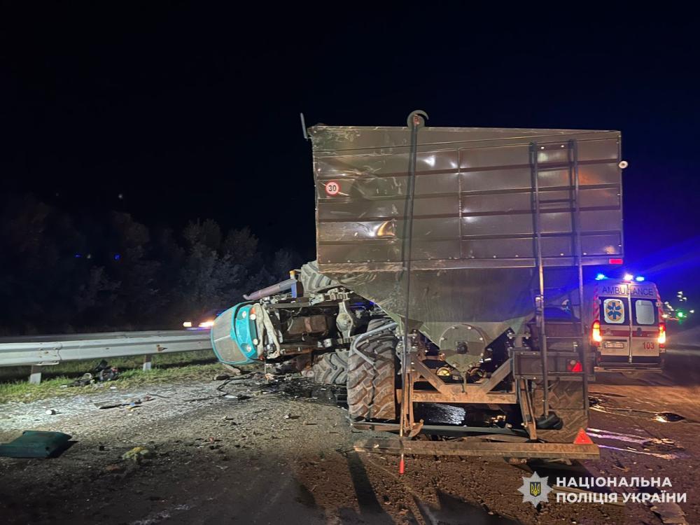 Унаслідок зіткнення трактор перекинувся. Поліцейські разом з рятувальниками деблокували водія.