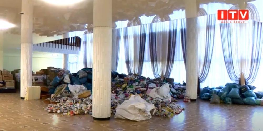 У міському палаці культури "Текстильник" волонтери сортують гуманітарну допомогу для тварин, яка надійшла із Німеччини. Тут - корми для кішок та собак, лежаки, переноски.