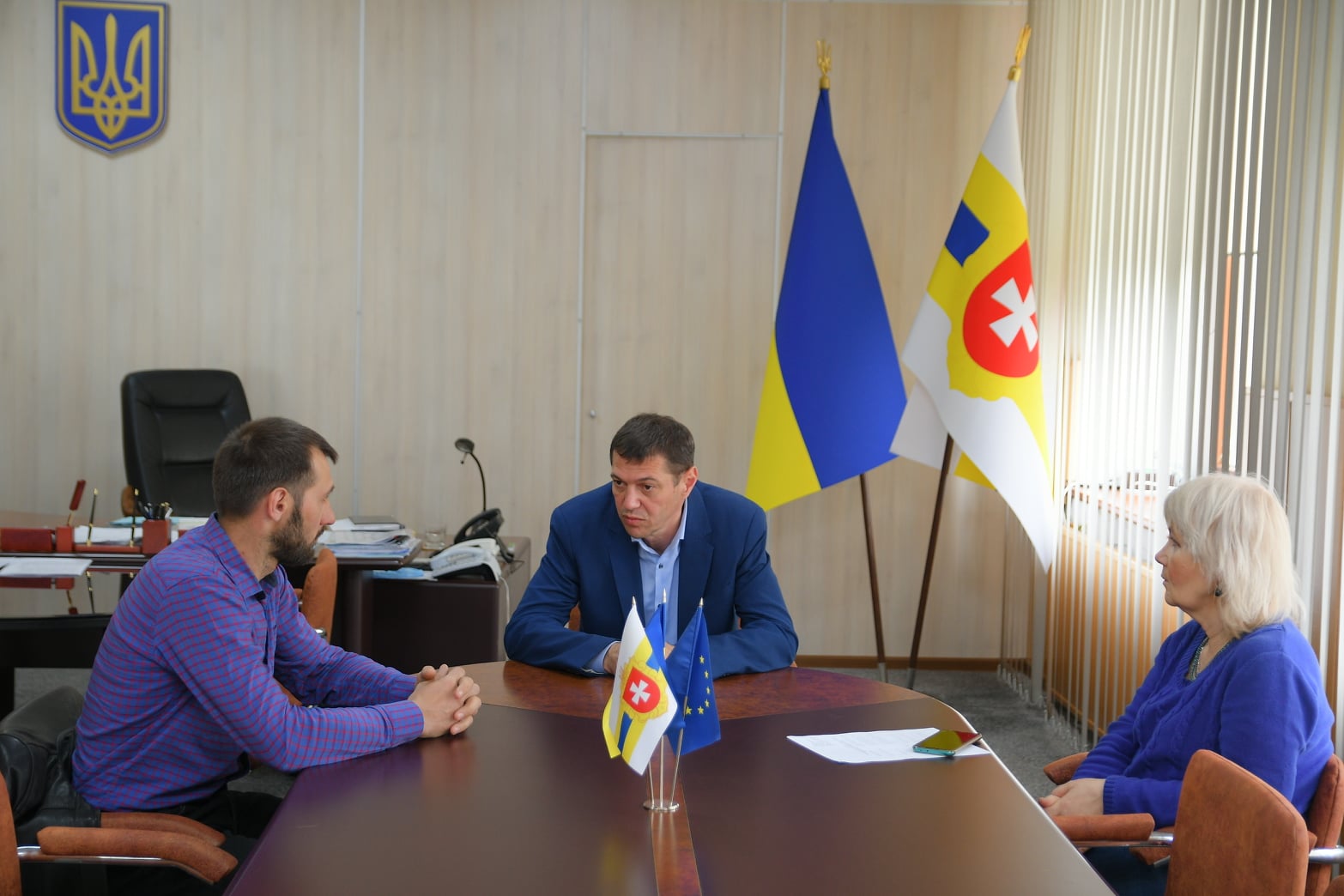 Процес відновлення згорілого будинку перший заступник голови Рівненської ОДА Сергій Подолін обговорив із директором архітектурно-планувального бюро Березнівської ТГ Іваном Бондарем і директоркою «Ветеранського Простору» Ольгою Яковлєвою.