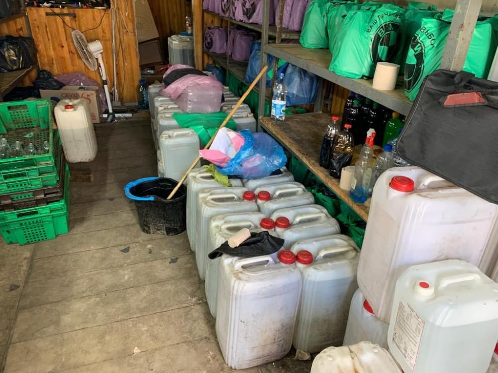 В ході слідчих дій виявлено та вилучено майже 5,5 тонн спирту, спиртосуміші та коньяку в пластикових бочках, каністрах та в пляшках відомих марок. Жодних документів на товар чоловіки не надали. Орієнтовна вартість алкоголю – 1,5 мільйона гривень.