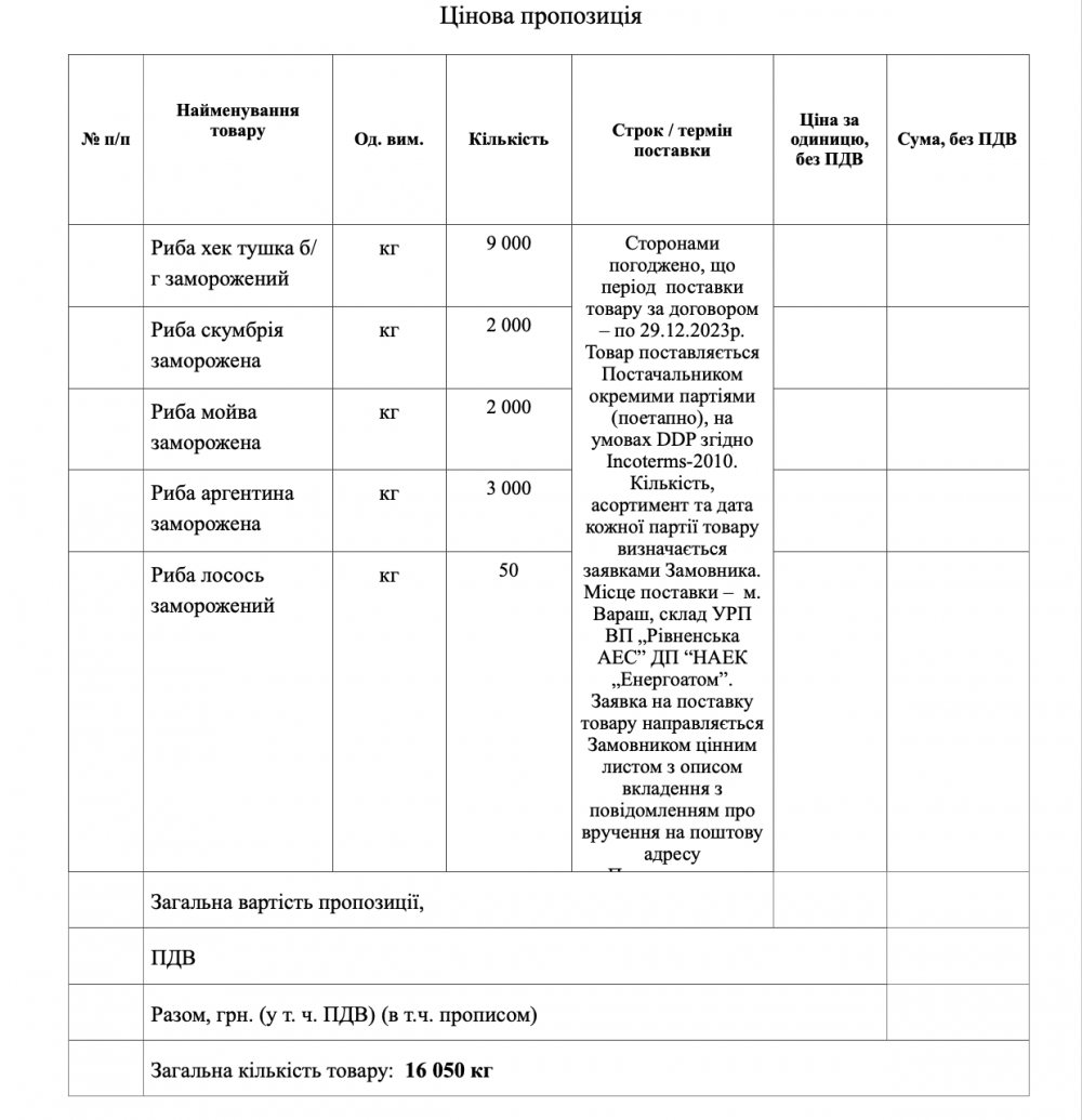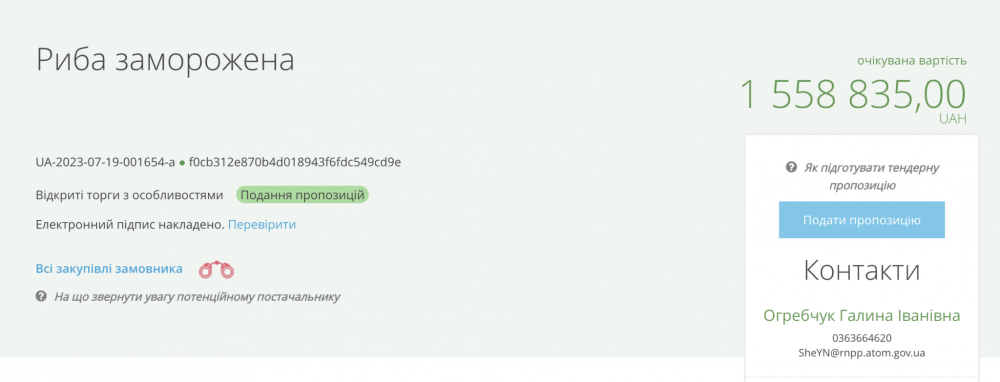 Днями у соцмережах з'явилася інформація про те, що Рівненська АЕС планує закупити близько 16 тис. кг замороженої риби за понад півтора мільйона гривень.