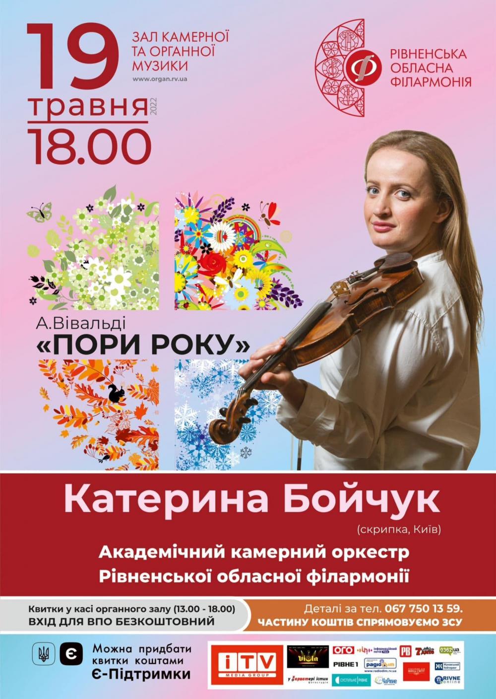 До Рівного завтра, 19 травня, приїздить відома скрипалька КАтерина Бойчук. Гратиме твори Вівальді.
