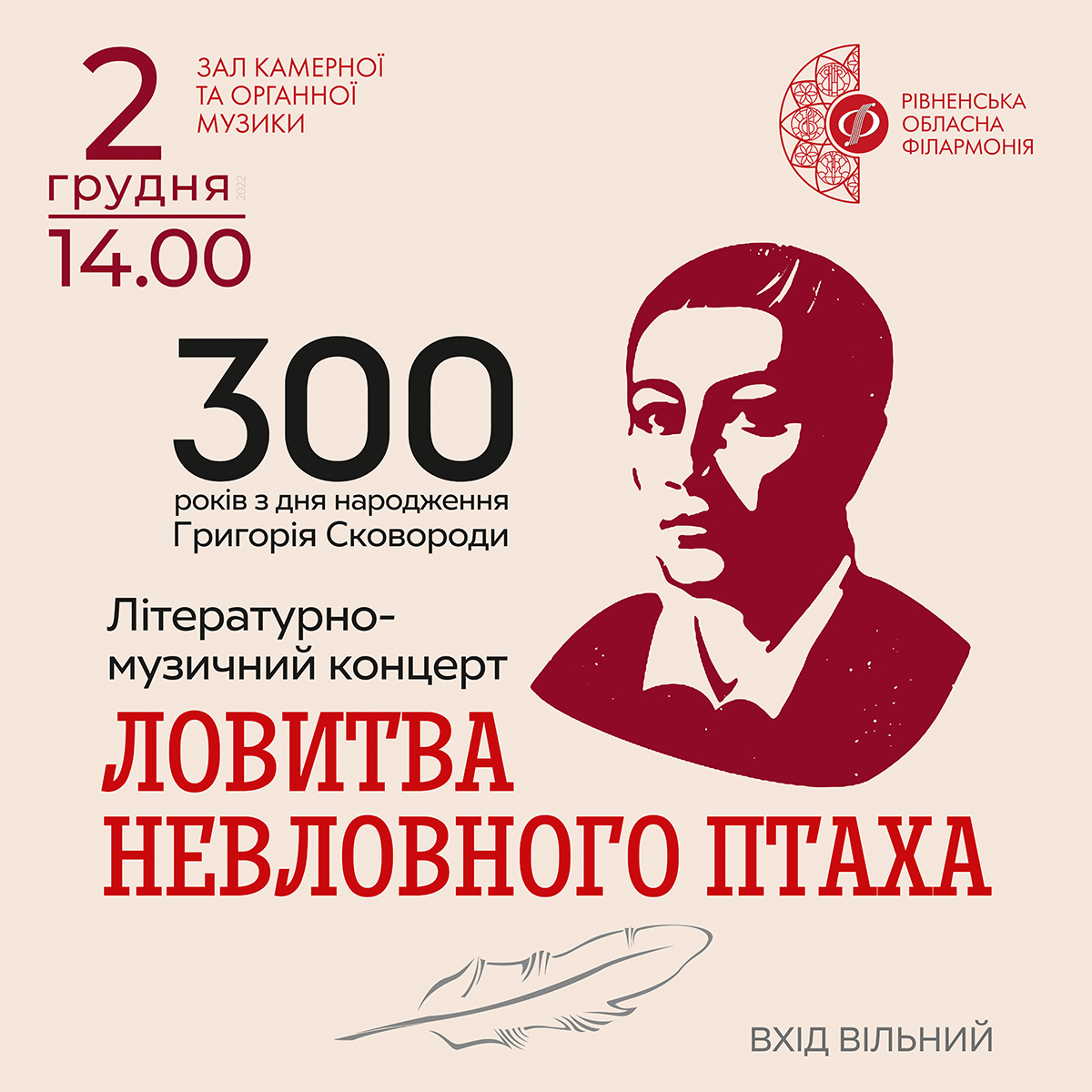 "До 300-річчя від дня народження мислителя і письменника Органний зал наповниться світом та світлом Григорія Сковороди", - йдеться у повідомленні.