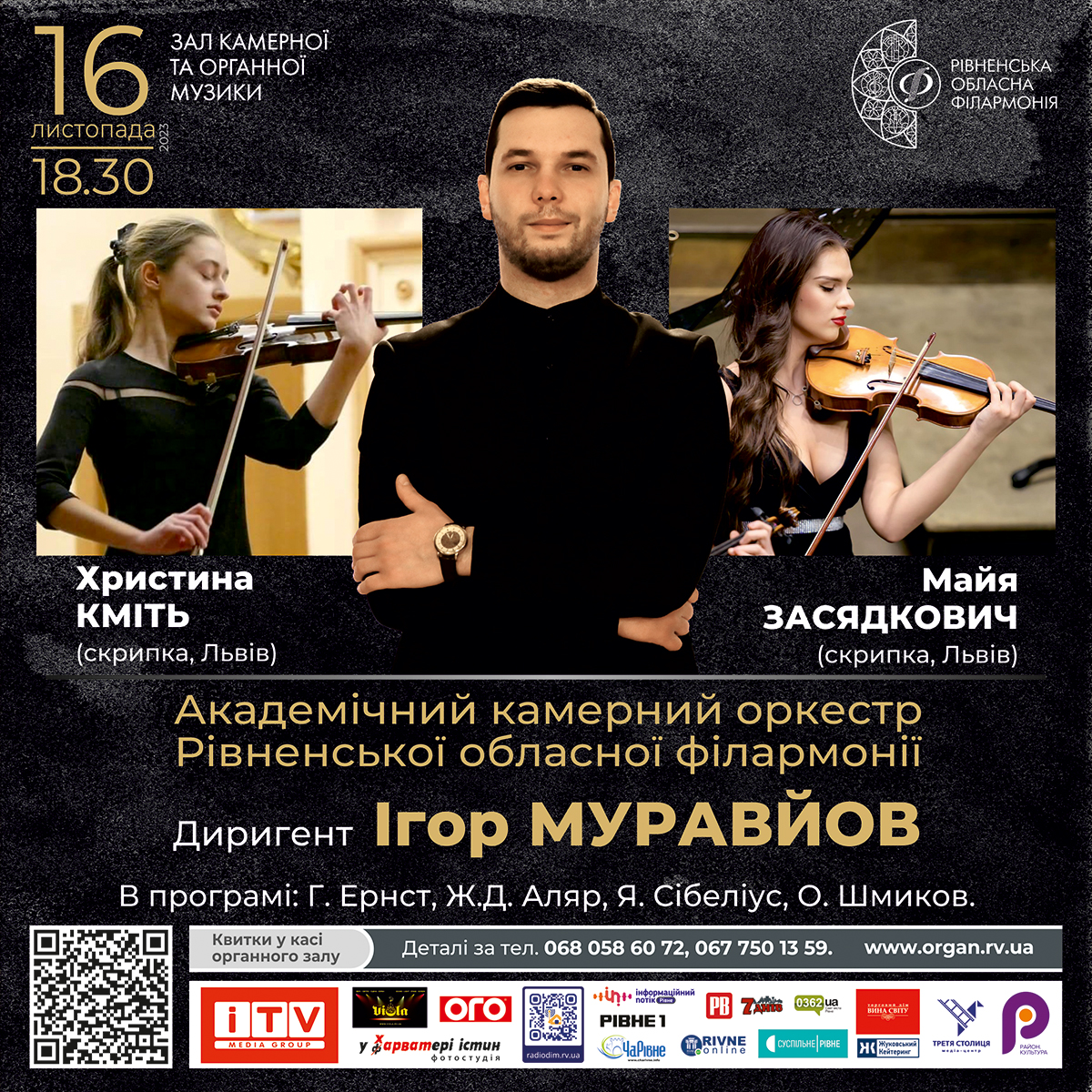 16 листопада в Залі камерної та органної музики Рівненської обласної філармонії гратимуть скрипальки, студентки Львівської національної музичної академії, вихованки професора Володимира Заранського Христина Кміть та Майя Засядкович.