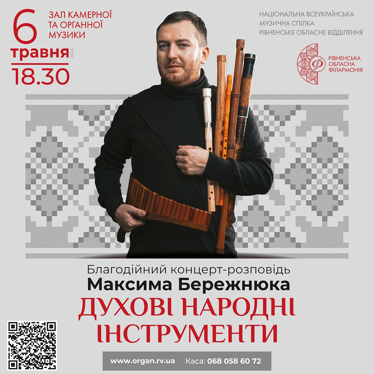 У Рівненській обласній філармонії відбудеться благодійний концерт-розповідь музиканта Максима Бережнюка котрий грає на 50 українських традиційних інструментах.