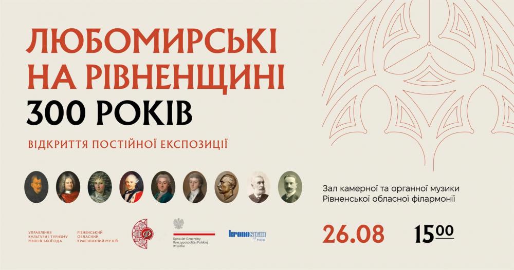 У Рівненській обласній філармонії відбудеться відкриття постійно діючої виставки "Любомирські на Рівненщині 300 років".