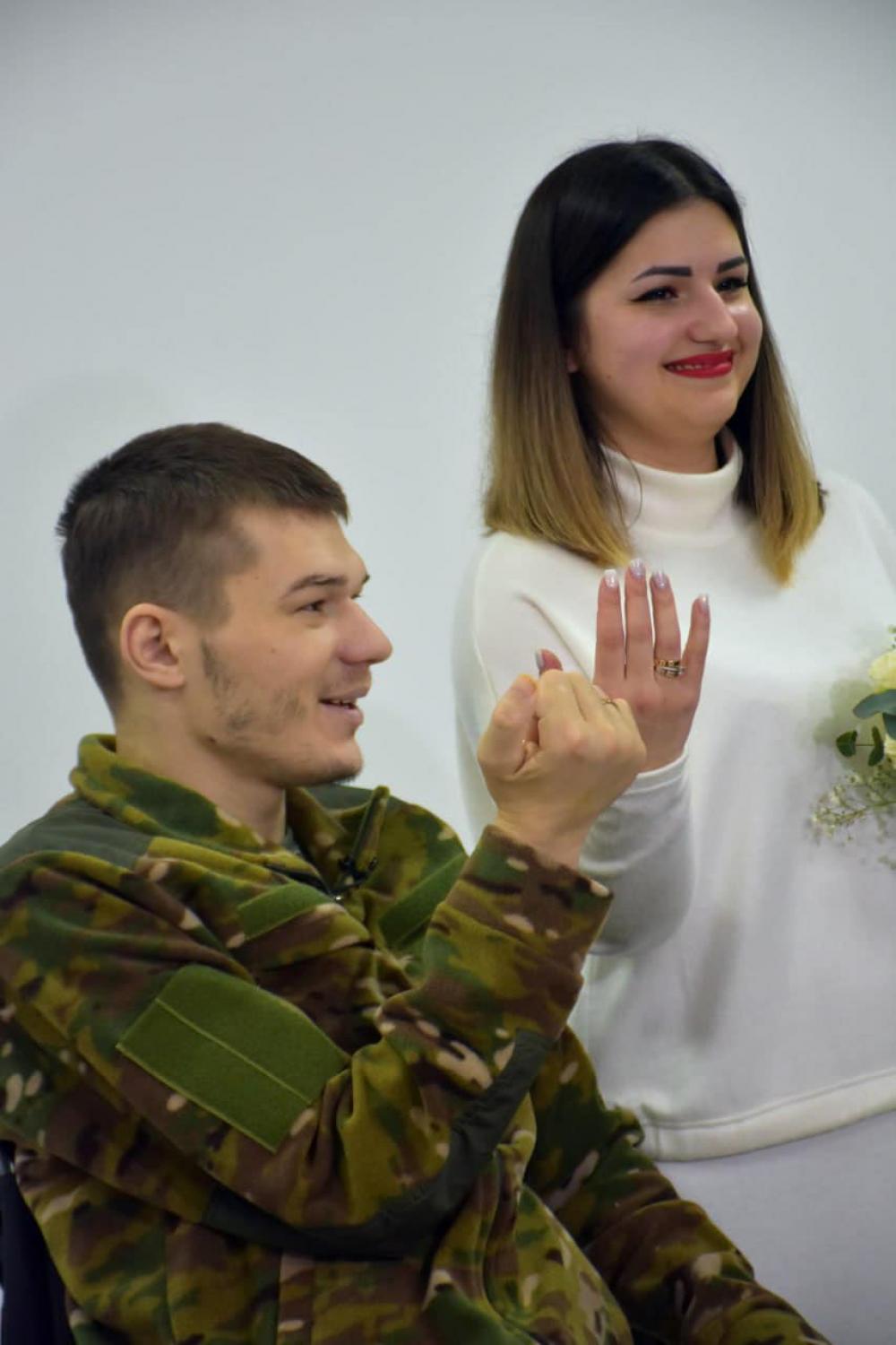 У рівненському госпіталі ветеранів війни одружився український військовий Ярослав та його наречена Тетяна.
