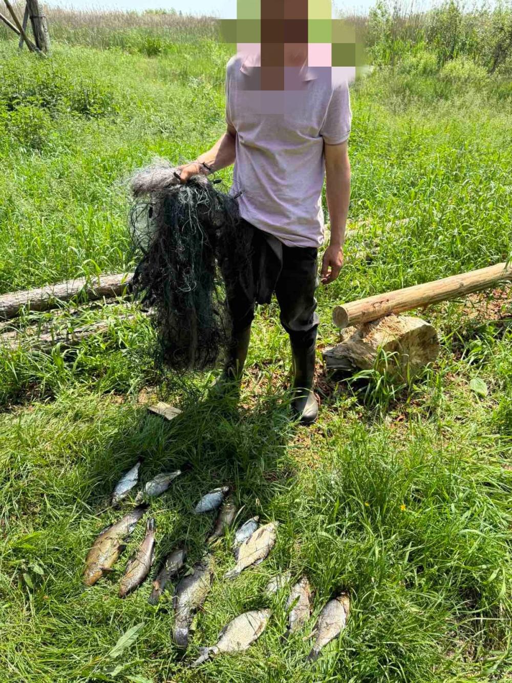 Чоловік ловив рибу із використанням заборонених знарядь – п’яти сіток. Йому вдалося спіймати 14 риб: одного окуня, чотирьох линів та дев’ять лящів. Сума збитків, завданих рибним запасам, становить 114 217 гривень.