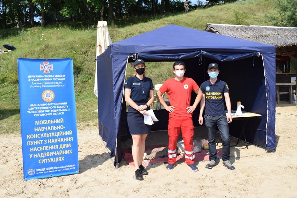 Фахівці провели інструктивне заняття з відпочиваючими щодо порятунку людей на воді. У ході навчань всіх присутніх ознайомили з методами надання домедичної допомоги на воді. Також під час заходу були вручені листівки про правила безпечної поведінки під час купання, виконання яких допоможе зберегти здоров’я, чи навіть життя.