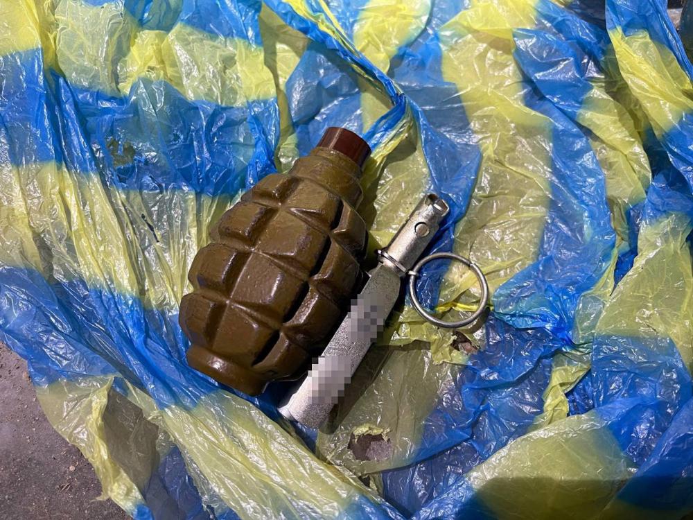 У подальшому під час санкціонованого обшуку за місцем проживання зловмисника поліцейські виявили поліетиленовий згорток, обмотаний скетчем, у якому містилася граната Ф-1 із запалом.