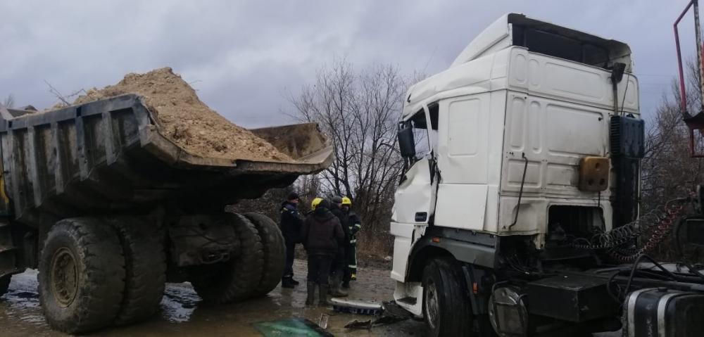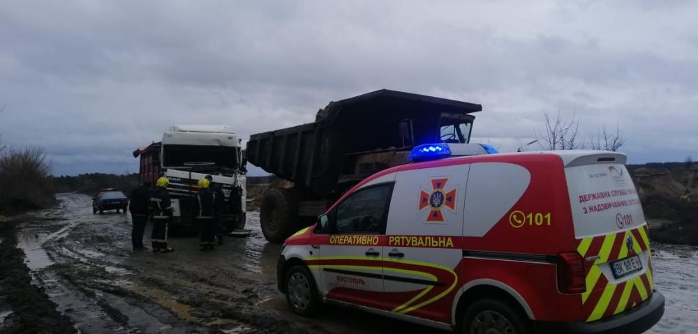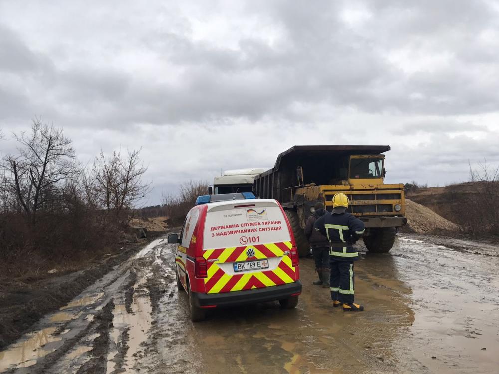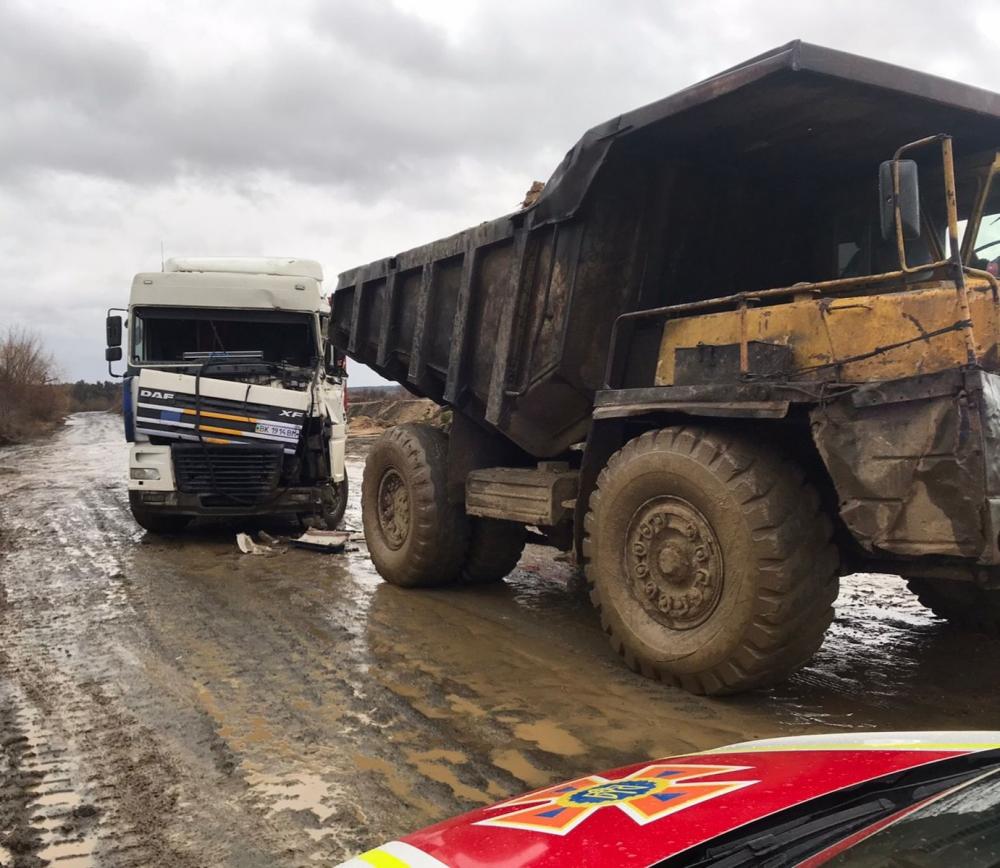 Прибувши на місце ДТП рятувальники побачили що автопригода трапилася за участю автомобілів марок БелАЗ та DAF.