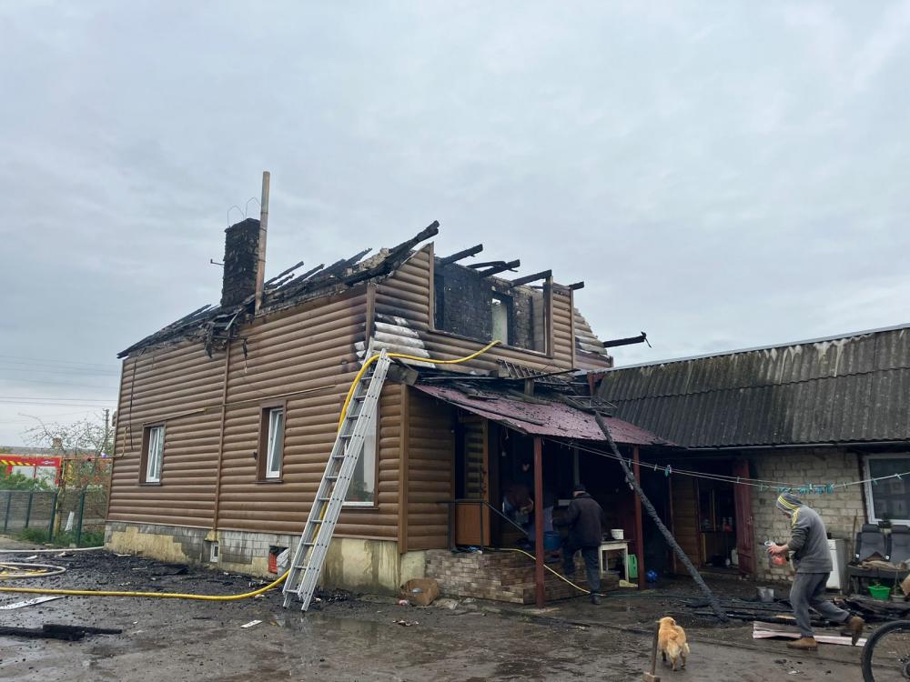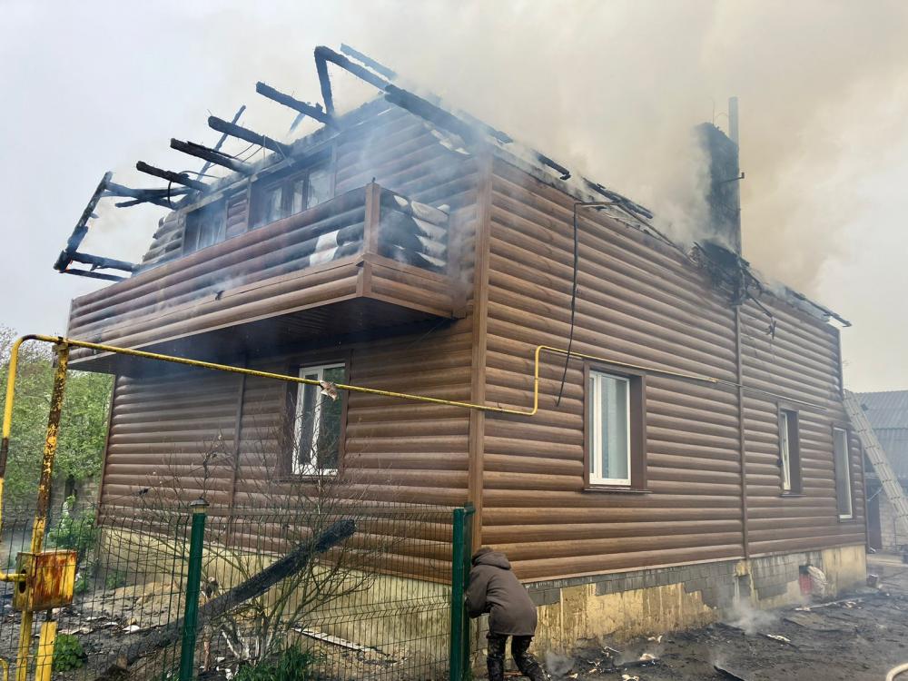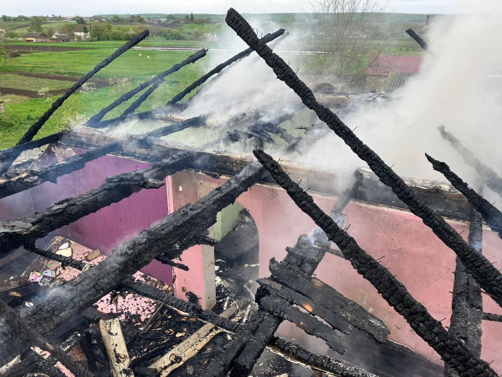 Внаслідок пожежі вогнем знищено покрівлю, 50 м.кв. між горищного перекриття, меблі та речі домашнього вжитку в мансардному поверсі 2-х поверхового цегляного житлового будинку розміром 10х8 м.