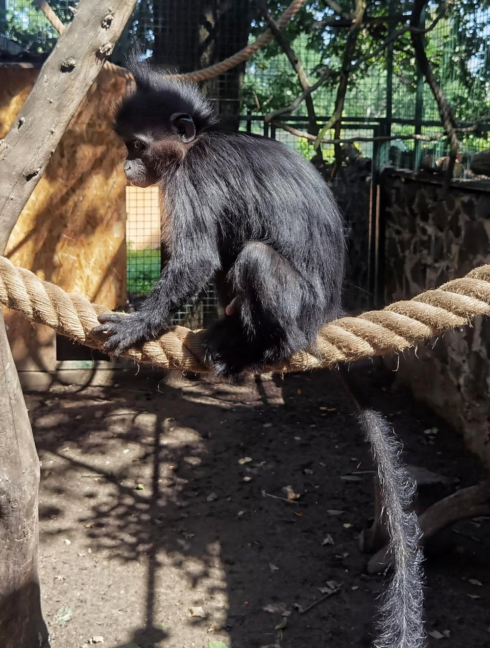 У Рівненському зоопарку чорного мангобея можна побачити в експозиції «Африканська савана». Жвавий і непосидючий – він полюбляє активно проводити час, показуючи неймовірні карколомні трюки під захоплені вигуки відвідувачів.