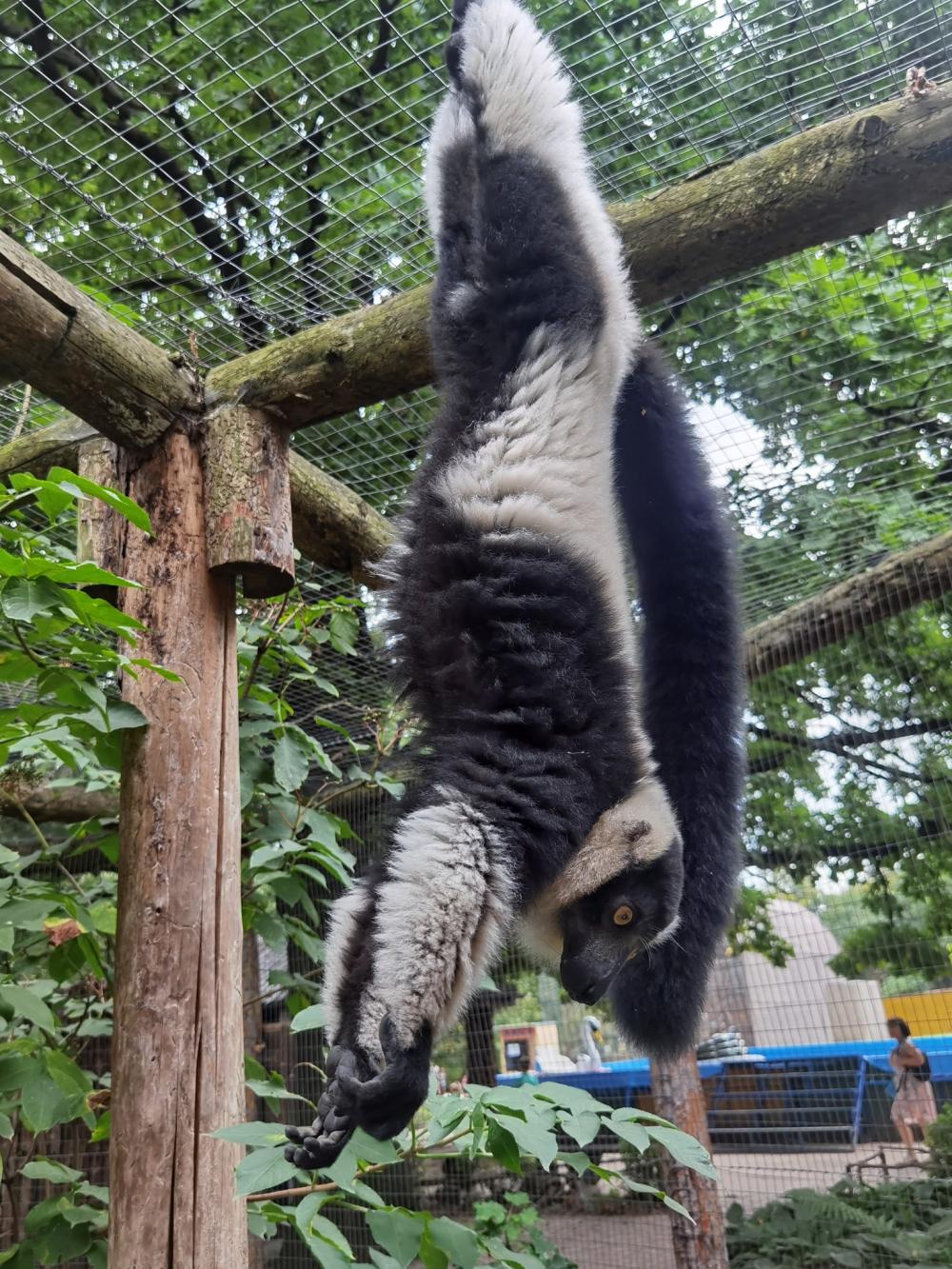 Кожна пара проживає в окремому вольєрі, а її представники — мають ще й свій цікавий, індивідуальний характер. Тварини полюбляють їсти фрукти, зелень та квіти (кульбаба, акація), молоді пагони (верба), йогурти, різноманітного роду каші, сир, варені яйця, які приносять їм працівники. До відвідувачів допитливі та дружні. Але злякавшись, лемури гучними криками можуть здивувати будь-кого з гостей закладу.