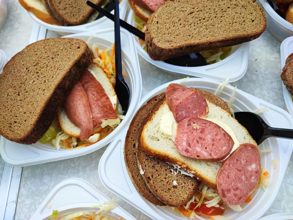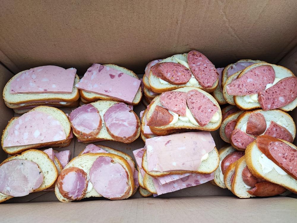 Цього разу рівнян пригостили тушеною картоплею, бутербродами, печивом, фруктами та гарячим чаєм.
