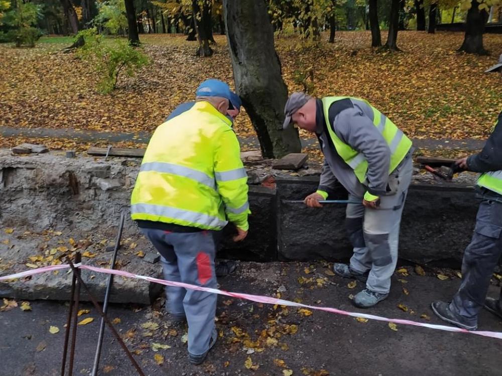 У Рівному ремонтують підпірну стінку у парку ім. Шевченка.