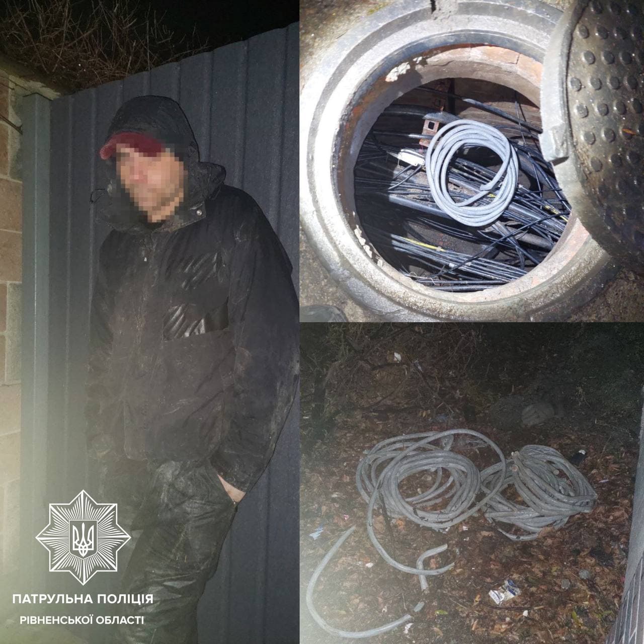Як повідомляють у відділі комунікації поліції Рівненщини, інспектори на місці виявили відкритий люк у якому перебував чоловік з інструментами. Громадянин побачив службовий автомобіль, поспіхом почав вилазити з люка, викинув пилку для різання металу та перебіг на протилежний бік дороги.