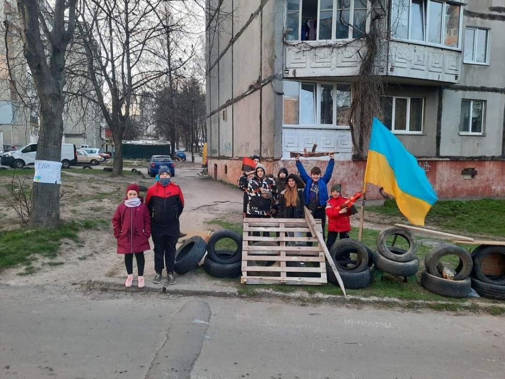 На одній із вулиць Рівного діти змайстрували блокпост. Тут є й шини, й дерев'яна барикада, й найголовніше - прапор України.
