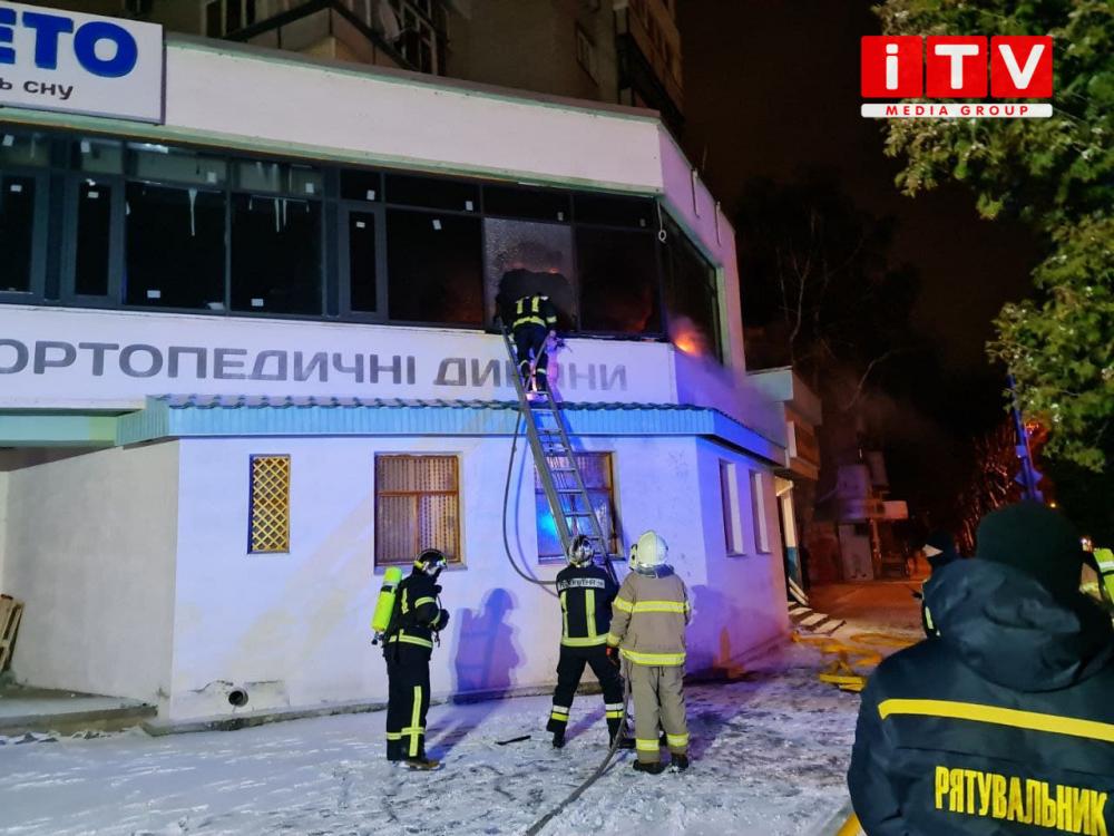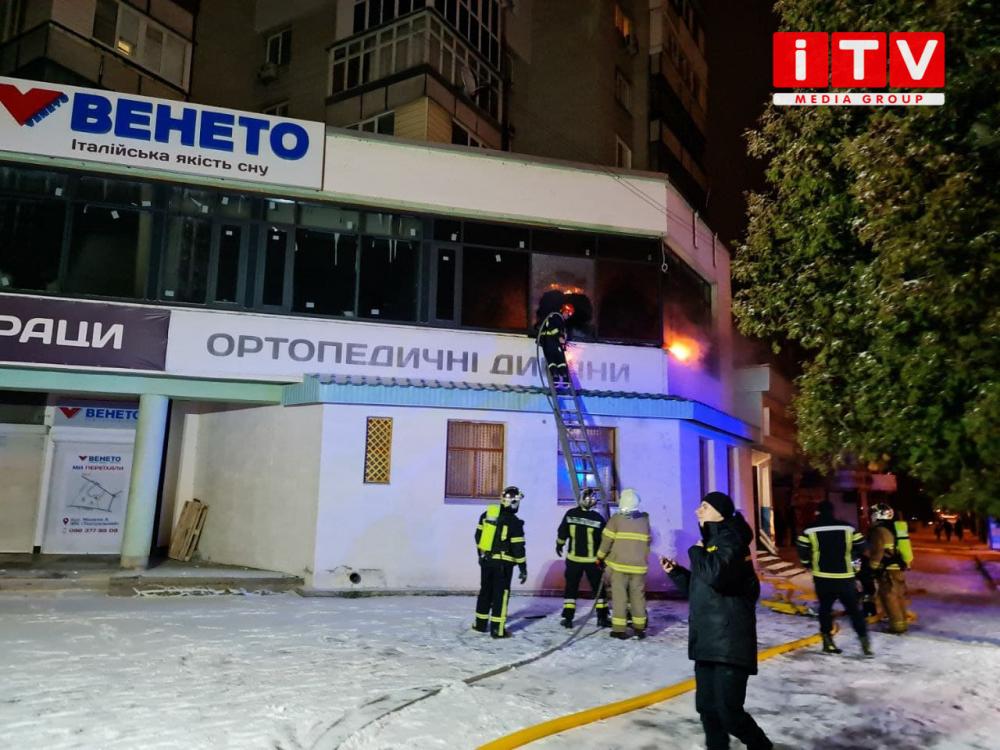 Загорання трапилося на незначній площі нежитлового приміщення над салоном Венето, який знаходиться у 14-поверховому житловому будинку.