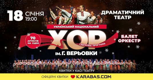 Світ аплодує їм стоячи! Колектив, відомий у найдальших куточках світу! Унікальна творча формація, яка вже десятки років знайомить світ з українським музичним спадком та культурою! 18 січня у Рівному на сцені Драмтеатру виступить легендарний хор ім. Григорія Верьовки.