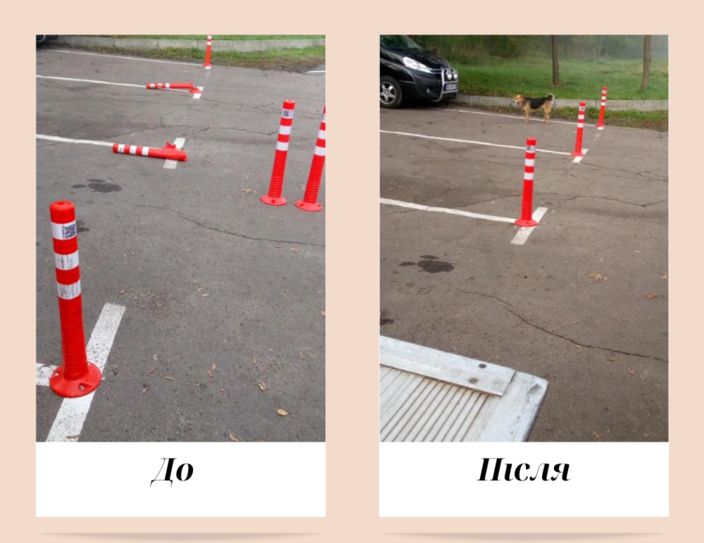 "На жаль, водії не зважають на нововведення і не хочуть виконувати ПДР. Попри чимало обмежувальних знаків та розмітку, водії продовжують паркуватися так, як хочуть. Наслідок цього можна побачити на фото. Працівники міськШЕУ замінили зламані обмежувальні стовпчики та вирівняли дорожні знаки", - зазначають комунальники.