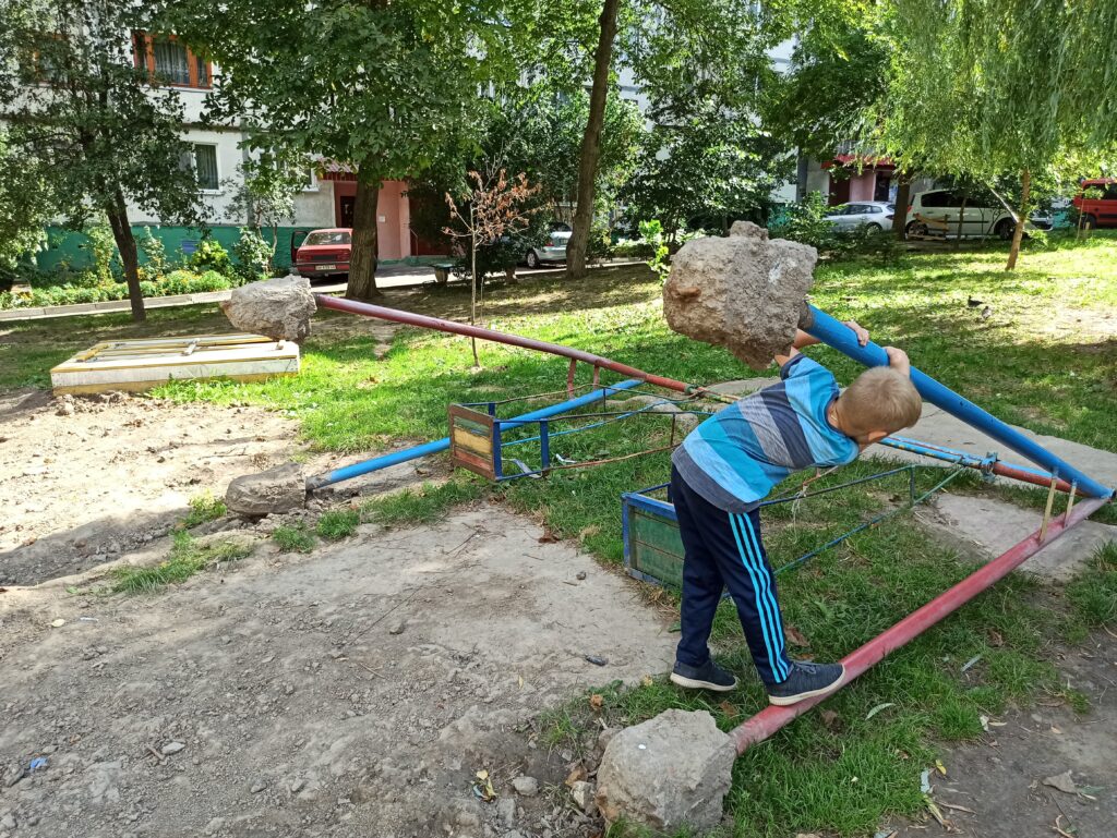 Новий майданчик побудували лише два роки тому нові гойдалки зруйновані, більшість з них забрали, окремі валяються серед розораної землі та каміння.