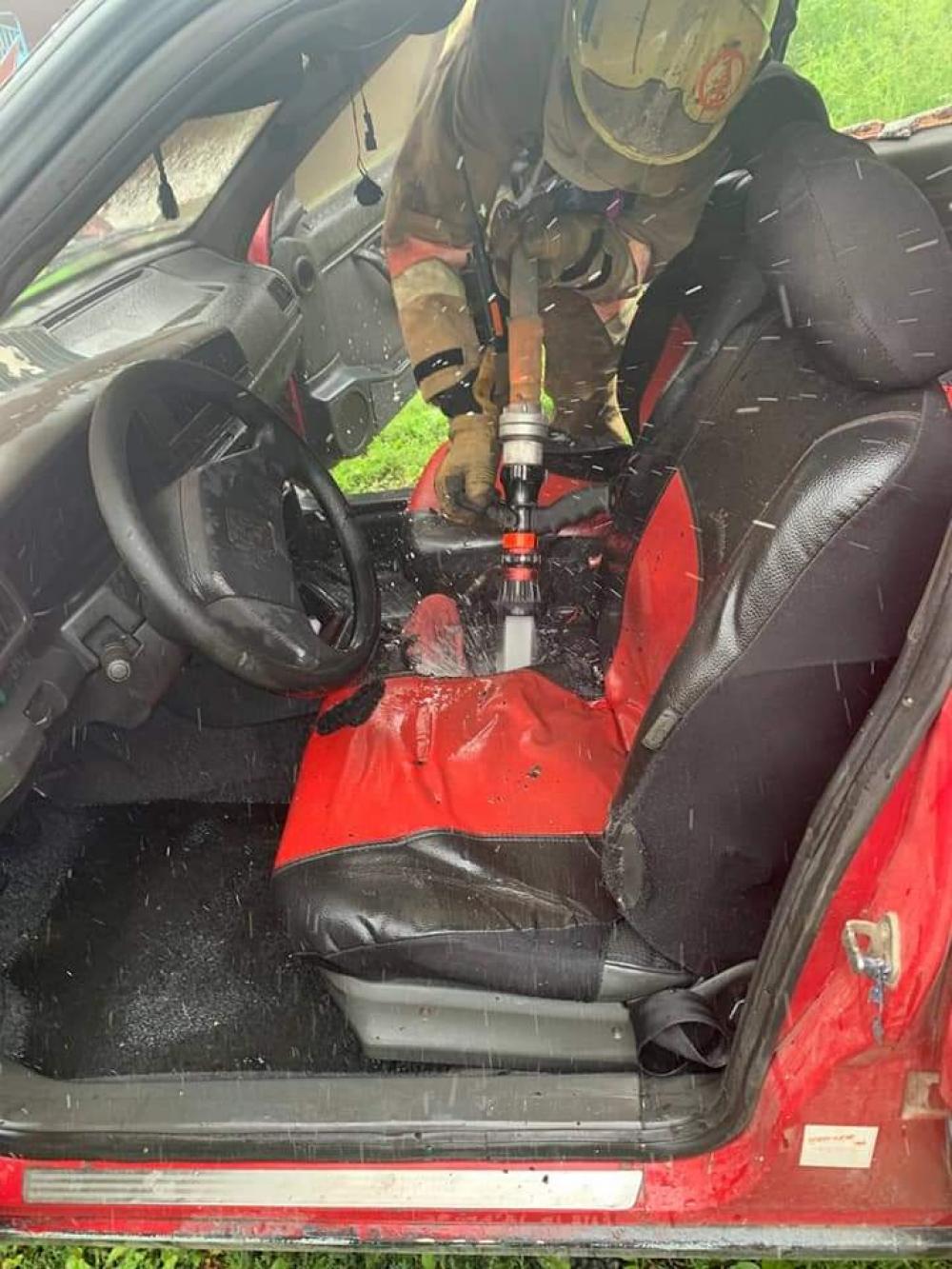 Власника автомобіля на місці не було. Вогнеборці за допомогою спеціального обладнання розкрили скло задніх дверей та подали водяний ствол.
