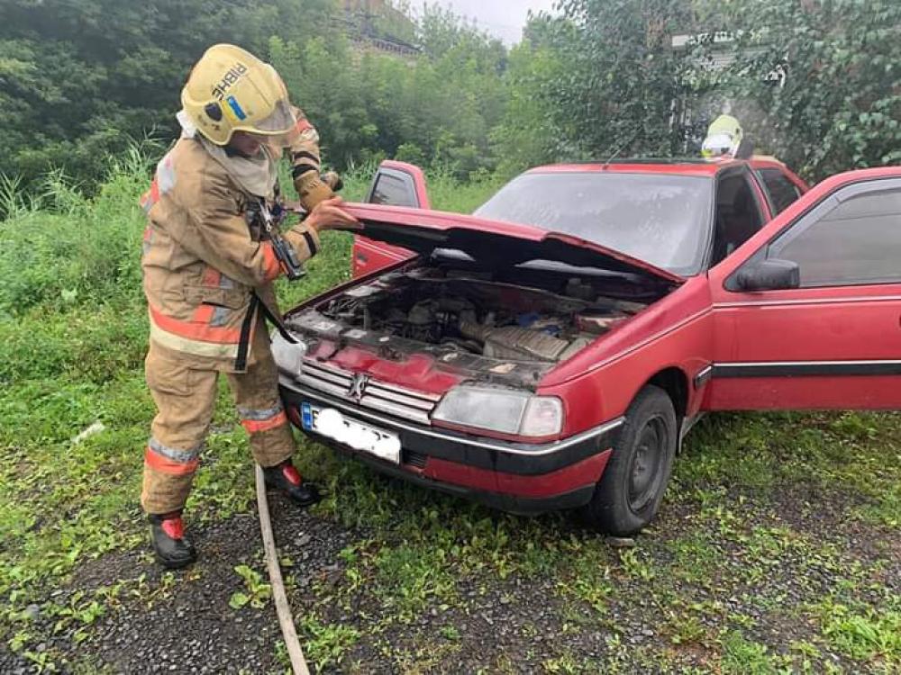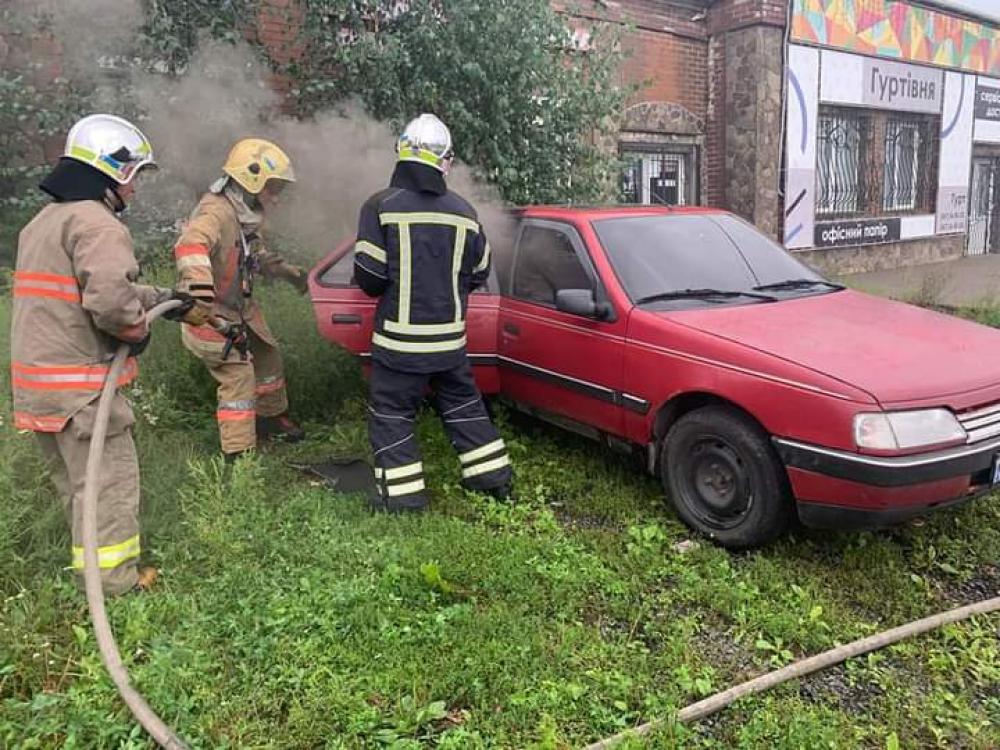 Прибувши за вказаною адресою рятувальники встановили, що салон легкового автомобіля Peugeot 405 повністю в диму.