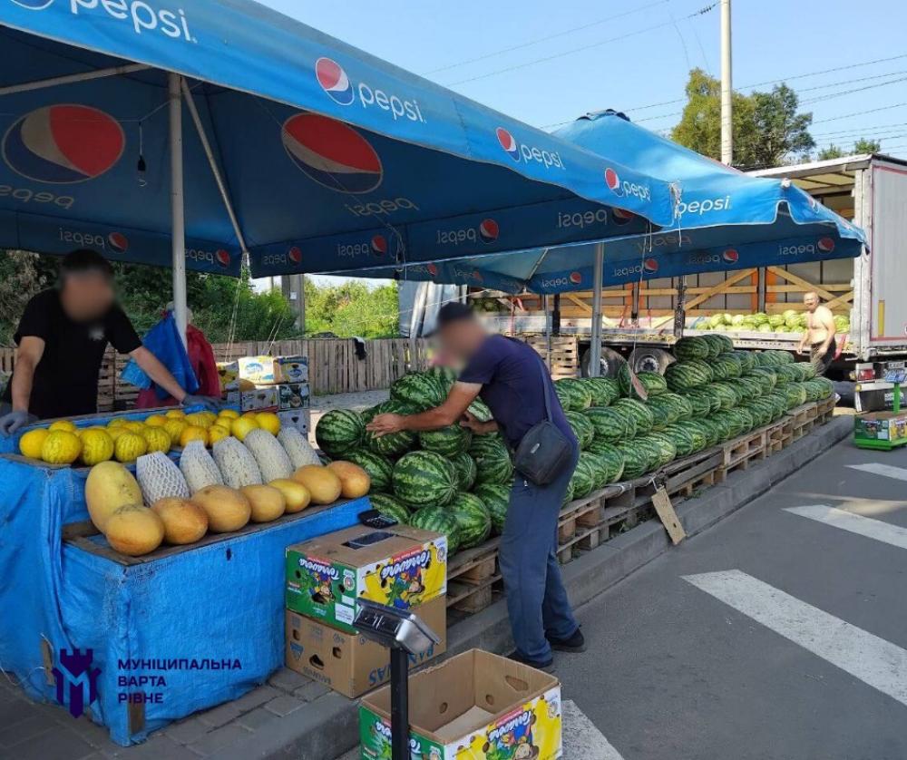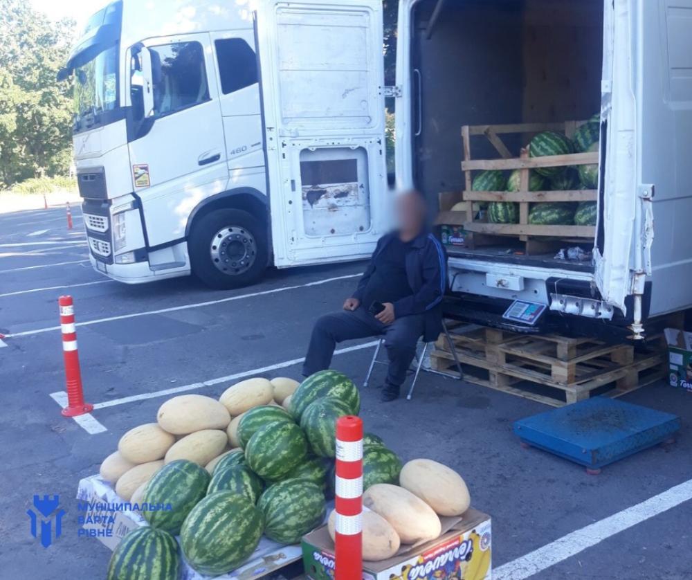 У Рівному на чоловіків, які продавали кавуни та дині у непризначеному для цього місці, винесли протоколи.