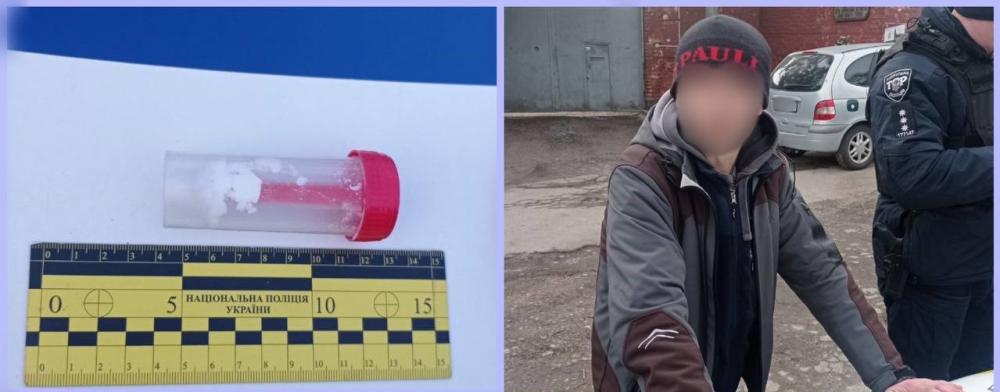 Інспектори зупинили чоловіка. Під час проведення поверхневої перевірки патрульні виявили в останнього пластиковий контейнер із порошкоподібною речовиною білого кольору, ймовірно, наркотичною.