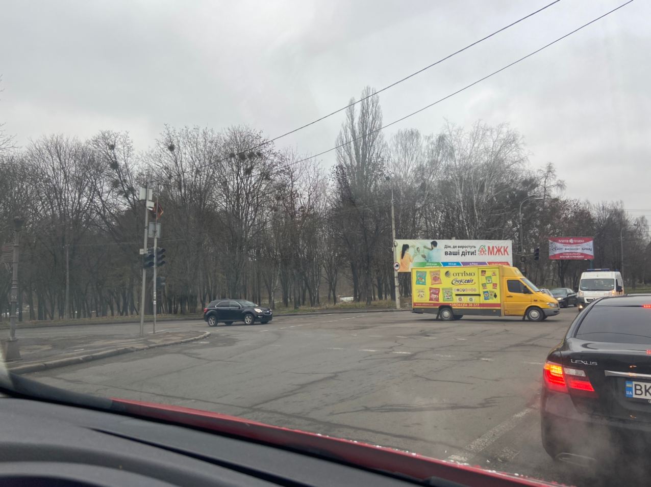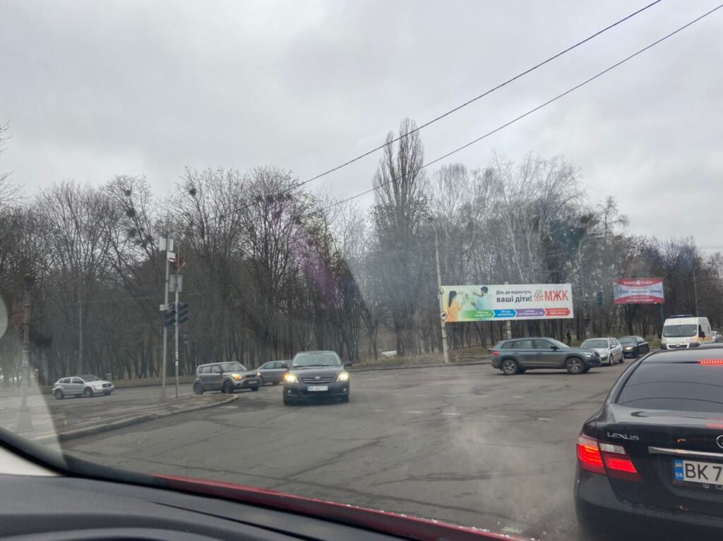 Рух на цій ділянці дороги ускладнений. Утворюються невеликі затори.