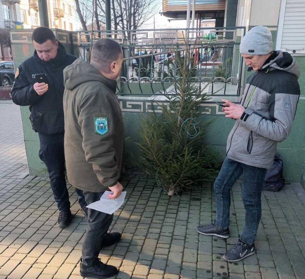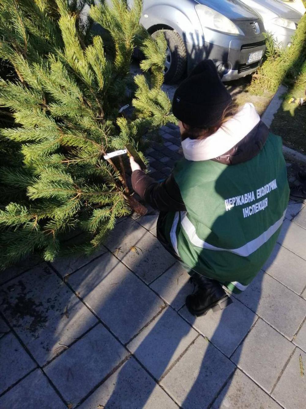 У Рівному в районі продуктового ринку по вул. Пересопницькій встановлено факт продажу новорічних ялинок серед яких одна була без відповідного маркування, що є порушенням вимог природоохоронного законодавства.