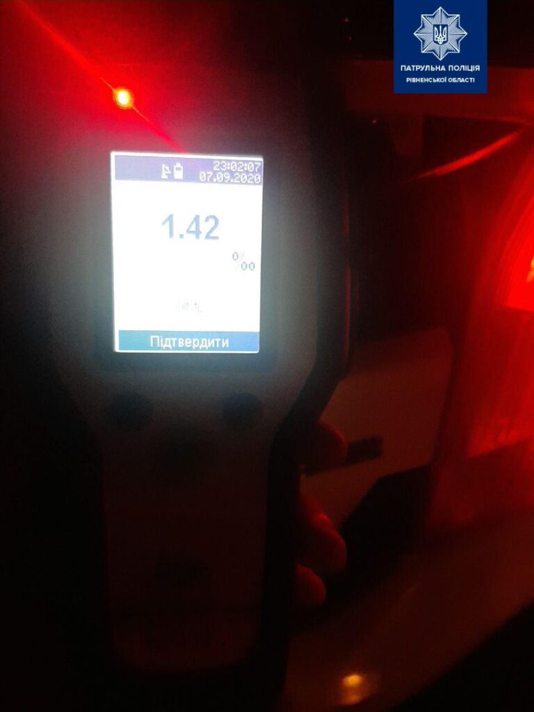 Під час спілкування з керманичем поліцейські помітили в нього явні ознаки алкогольного сп’яніння. Приладу Drager показав езультат 1,42 проміле.