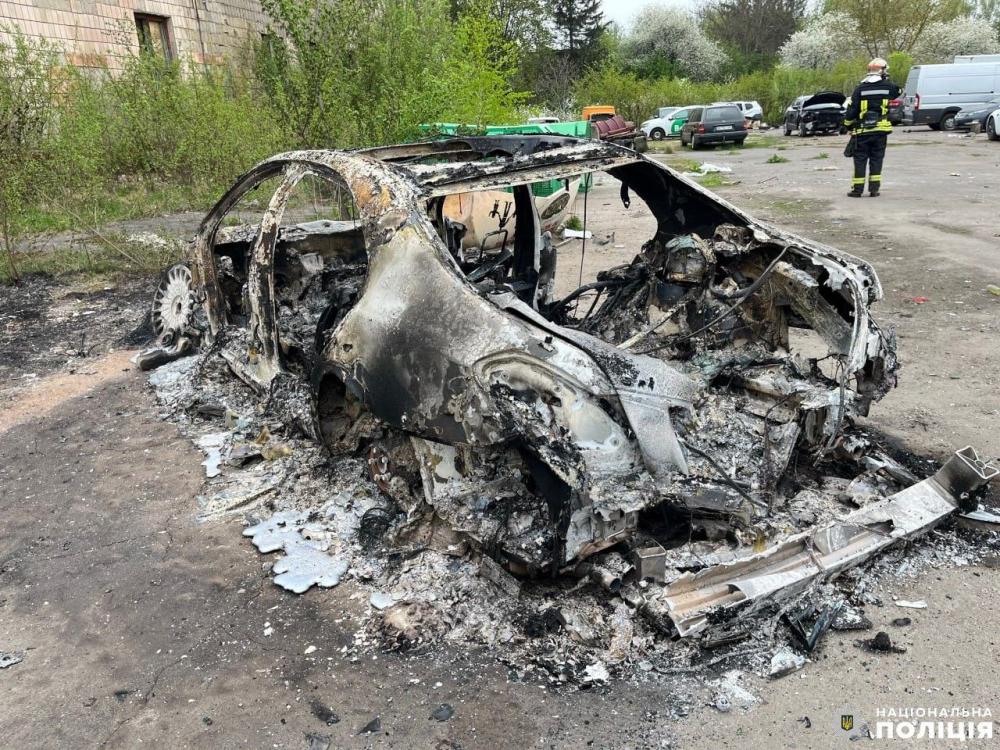 Поліцейські встановили, що орієнтовно о п’ятій годині ранку вчора, 13 квітня, на територію станції техобслуговування, де знаходився транспортний засіб, проникли невідомі особи, облили авто легкозаймистою речовиною та підпалили.