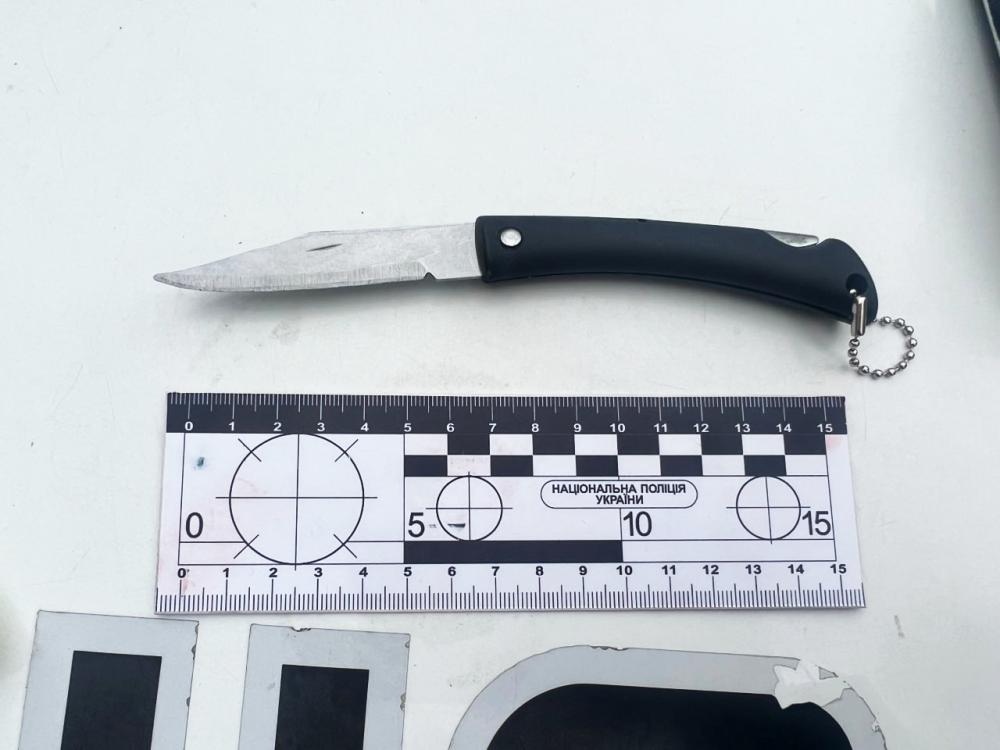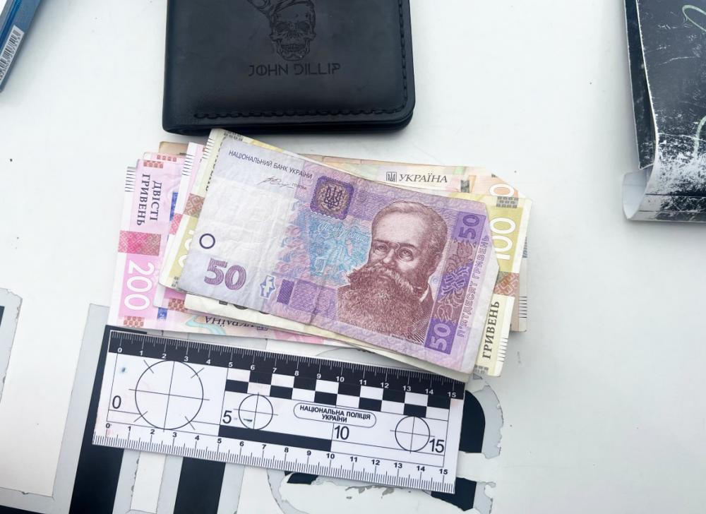 Поліцейські вилучили гаманець, у якому знаходилися грошові кошти в сумі 2050 гривень та особисті документи. Крім того, під час поверхневої перевірки у зловмисника вилучили два мобільні телефони та розкладний ніж.