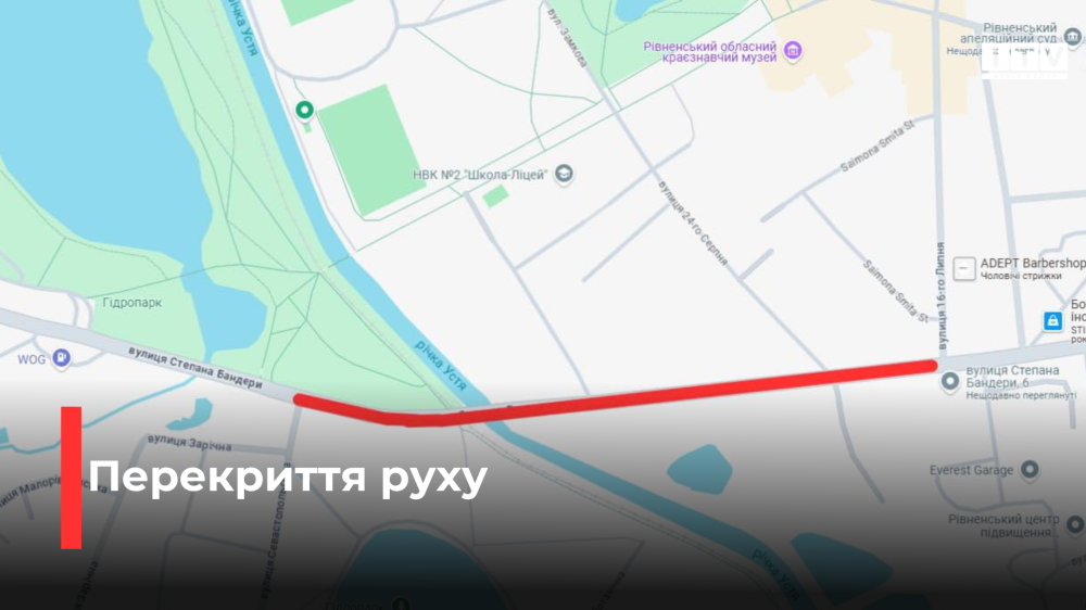 Сьогодні, 11 липня, буде перекритий рух вулицею Степана Бандери на ділянці від вул. 24 Серпня до вул. Севастопольської у зв'язку із дорожніми роботами на мості.