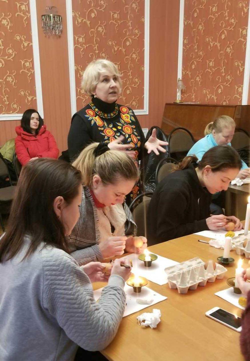 Напередодні в Рівненському обласному центрі народної творчості відбувся майстер-клас з писанкарства. Знана майстриня Вікторія Степанюк навчала цього сакрального мистецтва рівнянок та переселенок з інших регіонів України, які знайшли тимчасовий прихисток у нашому місці.