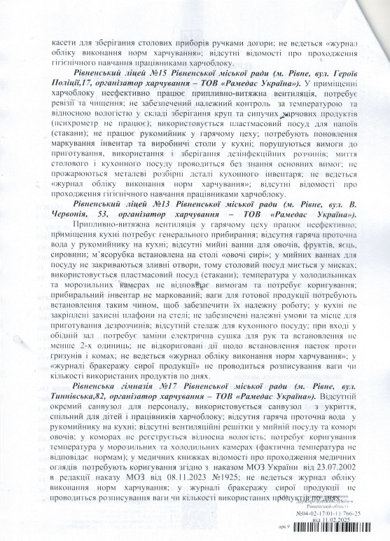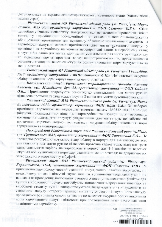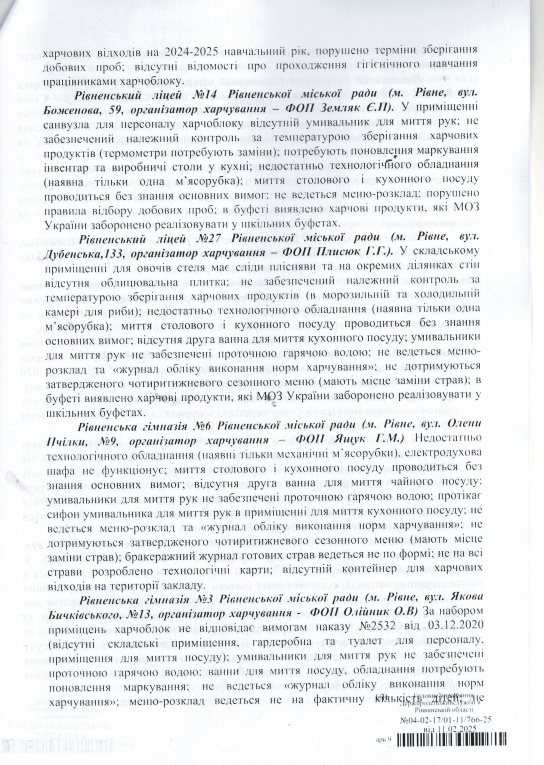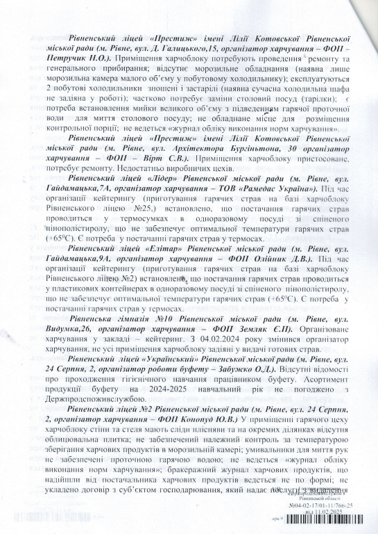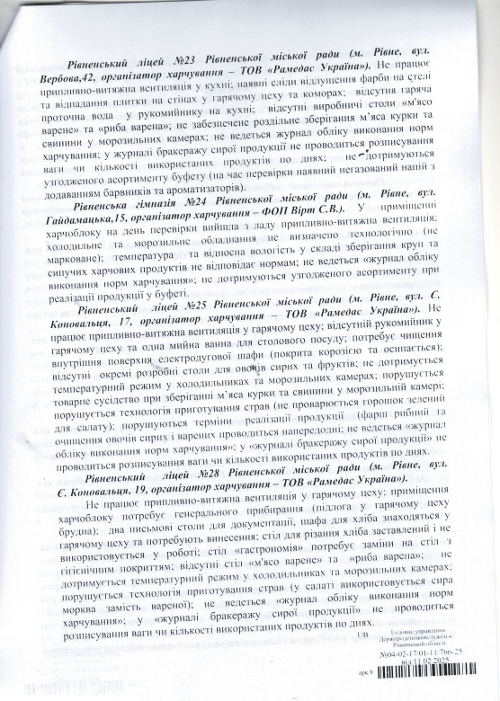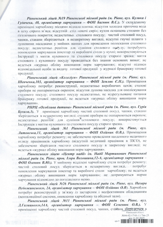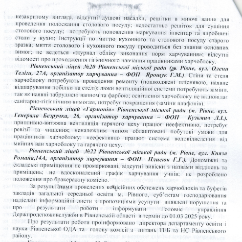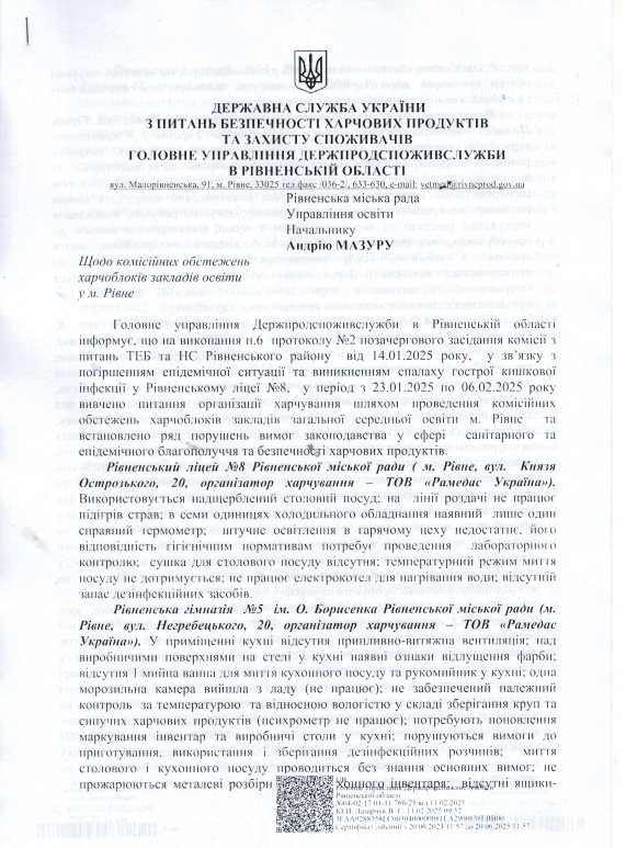 Ініціювали перевірку у зв'язку з погіршенням епідемічної ситуації та виникнення спалаху гострої кишкової інфекції у Рівненському ліцеї №8.