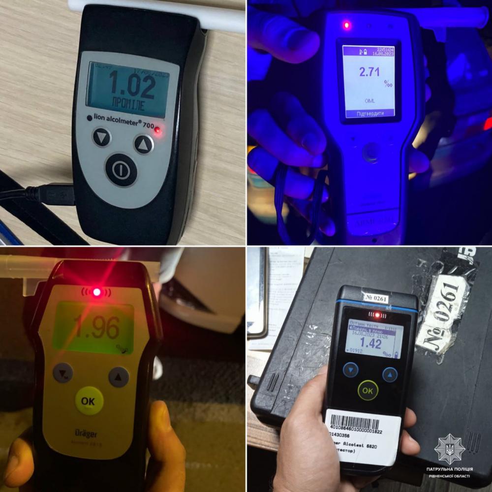 На 25-річного рівнянина патрульні склали протокол за ч. 1 ст. 130 (Керування в стані сп’яніння), за ст. 124 (Порушення ПДР, що спричинили ДТП), на винесені постанови за ч. 1 ст. 122 (За порушення вимог розмітки), ч. 2 ст. 122 за порушення правил користування попереджувальними сигналами при зміні напрямку руху), за ч. 1 ст. 126 (Не мав з собою відповідних документів на право керування транспортним засобом) КУпАП.