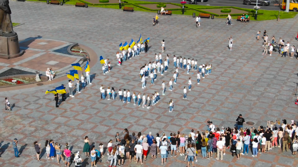 До танцювального флешмобу долучилися волонтери, поліцейські, місцеві, а також вимушено переселені дітлахи.