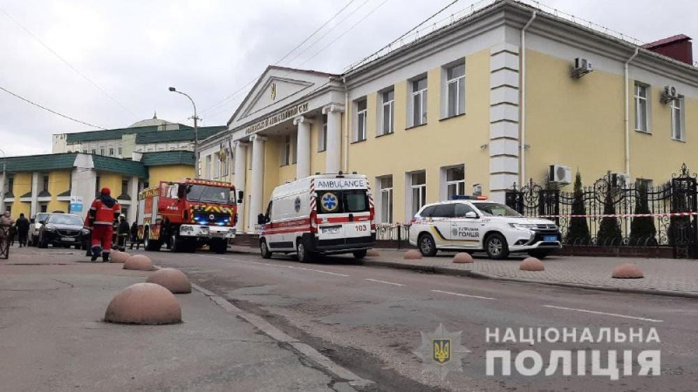 На місці події працює слідчо-оперативна група, екстерні служби. Вибухотехніки із кінологами обстежують адмінприміщення, із якогорятувальники евакуювали понад 40 осіб, та прилеглу територію.