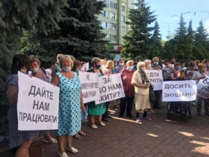 Сьогодні тут має відбутись сесія міськради. Базарники, які до карантину працювали на вулиці Базарній, Пересопницькій та Шевченка. Нині ж, вони просять відновити свою роботу на рівні з іншими підприємцями. Адже вони не торгують вже близько 3 місяців.