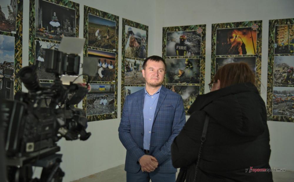 У цьому виставковому залі, картини війни показують не вперше. Керівництво торгово-розважального центру “Happy mall” постійно долучається до подібних ініціатив. Директор Тарас Максименко каже, фотографам вдалося за допомогою об’єктива повністю передати героїзм та боротьбу українського народу, а також наслідки російського вторгнення та всю трагедію війни.