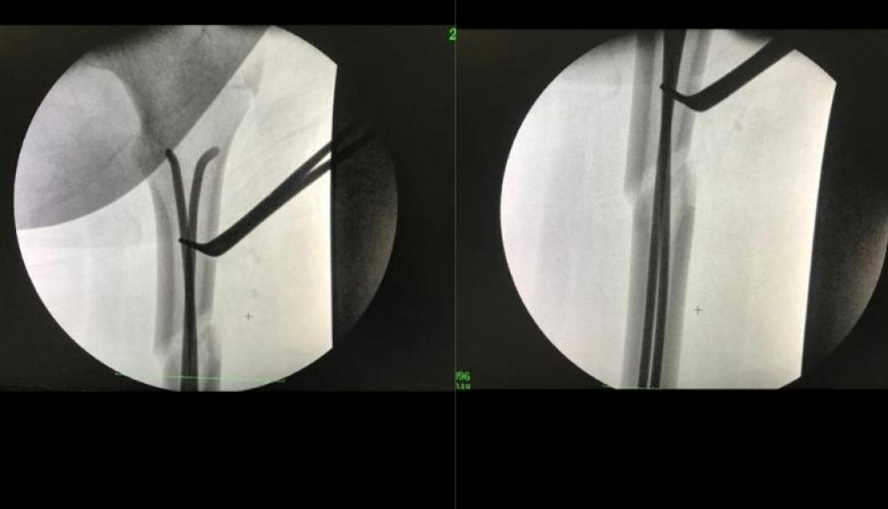 “Одинадцятирічна дитина після ДТП була госпіталізована із закритим перелом правої стегнової кістки у верхній третині зі зміщенням уламків. Пацієнтці проведено малоінвазивне втручання з фіксацією даного перелому двома титановими еластичними стрижнями. Це золотий стандарт лікування переломів довгих трубчастих кісток у дітей у всьому світі. Під час операції здійснюється невеликий розріз шкіри не більше 1.5 см, у середину кістки вводиться титановий стрижень”, - розповів завідувач центру дитячий Ігор Яковець