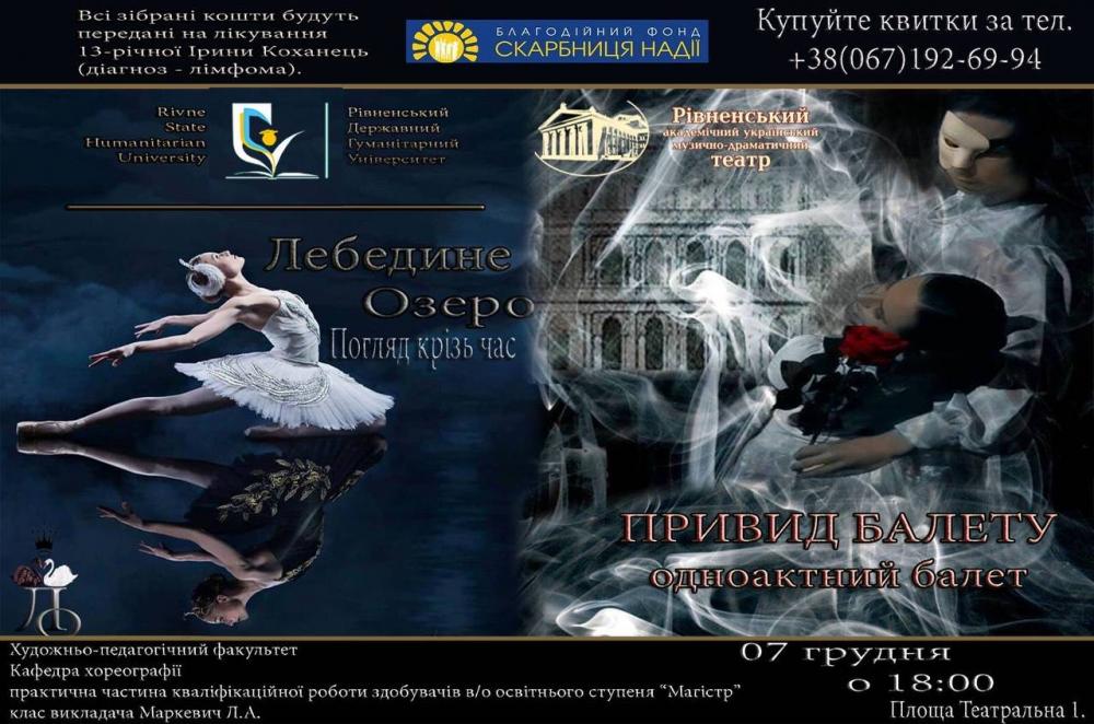 7 грудня 2021 року о 18.00 в Рівненському академічному українському музично-драматичному театрі відбудеться благодійний показ двох одноактних балетів «Лебедине озеро: погляд крізь час» та «Привид Балету».