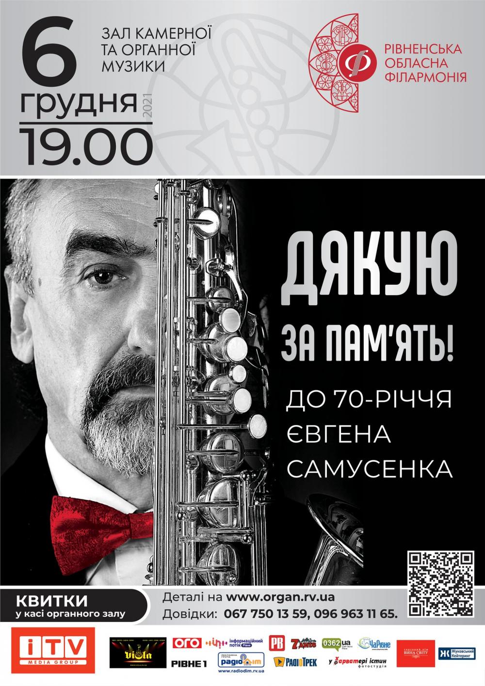 У Рівному 6 грудня о 19:00 у Органному залі відбудеться коцерт пам'яті Євгена Самусенка. Це відомий рівненський саксофоніст, педагог, лауреат та учасник Всеукраїнських та Міжнародних конкурсів та фестивалів.