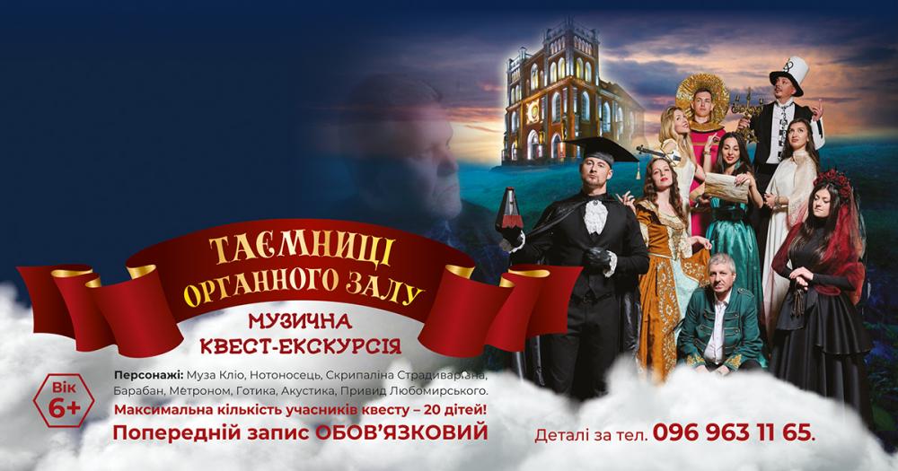 "Дивакуваті і загадкові жителі: Муза Кліо, Нотоносець, Скрипаліна Страдиварівна, Барабан, Метроном, Готика, Акустика, Привид Любомирського. Кожна дитина отримає карту з таємницями Органного залу, які їй потрібно буде розгадати, аби віднайти старовинну мелодію", -зазначають у філармонії.