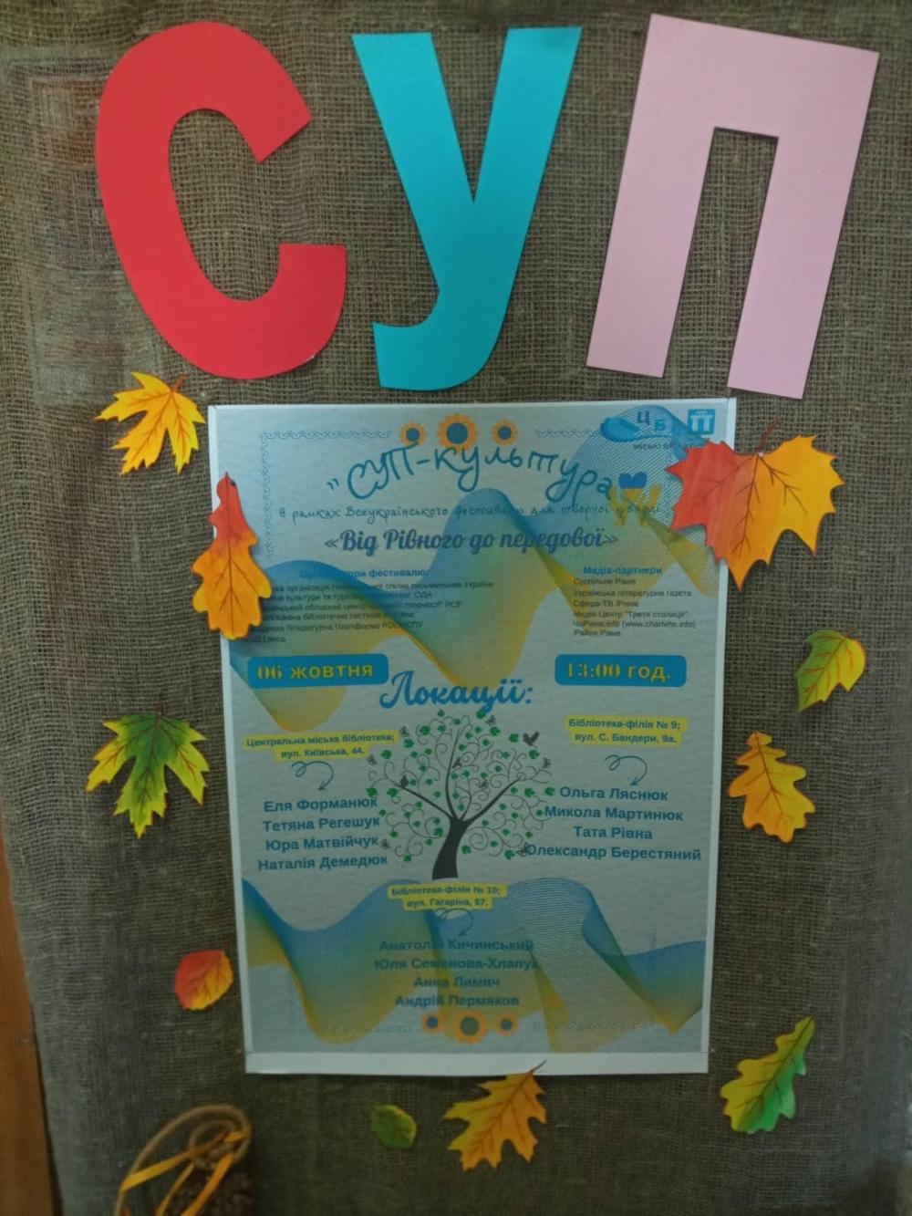 У Рівненській центральній бібліотеці провели літературний фестиваль для молоді «СУП-культура». Цьогорічний захід відбувся під гаслом «Від Рівного до передової».
