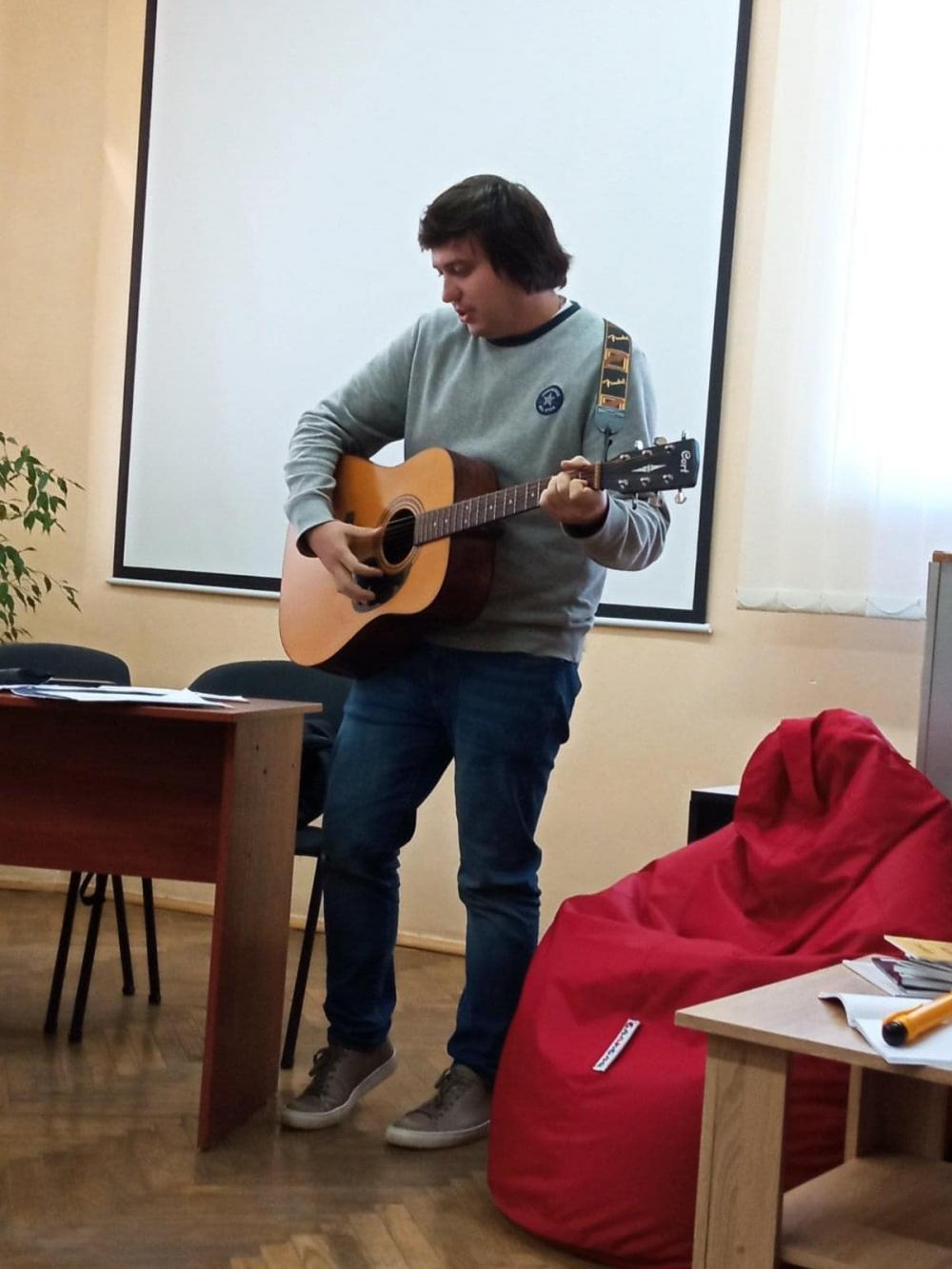 Острозький поет та бард Юрій Матвійчук заспівав присутнім свої «музичні» вірші під акомпанемент гітари.